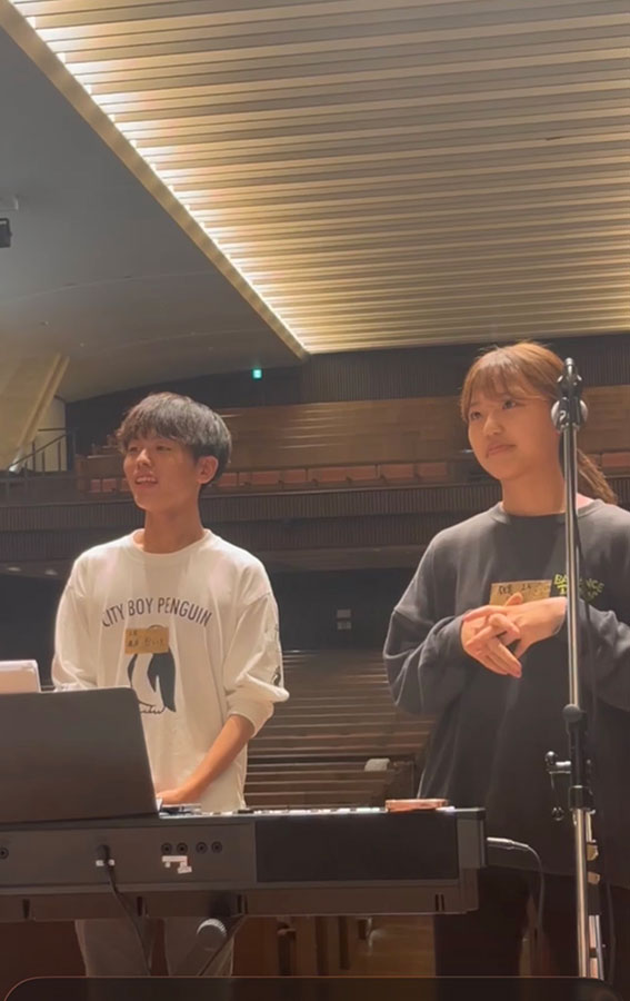 ガウチャー記念礼拝堂内でゴスペル練習中の吉田さん(左)