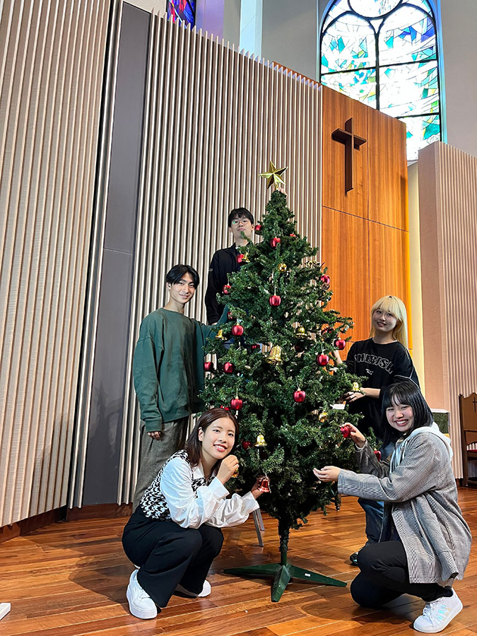青学に入学して初めて礼拝に参加しましたが、想像していたよりも親しみやすい雰囲気だと感じました。「キリスト教概論」の授業を通じて世界にはさまざまな考えがあることを知り、視野が大きく広がったと思います。世界中には多くのクリスチャンがいるため、教養という面からもある程度はキリスト教について学んでおくべきだと思います。 文学部 英米文学科 初めての礼拝に際しては「キリスト教概論」の授業で事前レクチャーがあったため、安心して参加できました。礼拝堂には各席に聖書と讃美歌の本が設置されているので、聖書などを持っていなくても出席できます。 教育人間科学部 教育学科 クリスマスツリーの点火式は大勢の人で賑わいますが、それとは対照的に礼拝では厳かな空気に心が落ち着いていくのを感じます。日々の授業や礼拝を通じて「私自身が“地の塩”であり“世の光”である」と感じられるようになりました。 教育人間科学部 教育学科 まずは礼拝形式の入学式に驚き、「キリスト教概論」では、これまで自分が触れてきた文化とキリスト教の文化が全く異なることに圧倒されました。信者数が世界人口の1/3を占める宗教を学ぶことは有益ですし、物事の背景にキリスト教が関わっている場合もあると知ると新たな視点が生まれます。ガウチャー記念礼拝堂はいつ訪れても素敵な場所で、これほど立派な礼拝堂のある大学は珍しいと思うのでとても気に入っています。 教育人間科学部 教育学科 初めて礼拝に参加するときには「礼拝では説教の内容に耳を傾け、必要に応じてメモを取ること」といった事前レクチャーがあるので安心してください。礼拝には学外の方の姿も多く、地域や社会に開かれた場であると感じました。「キリスト教概論」も非常に良い学びになっています。それまで、キリスト教発祥の地はヨーロッパであるというイメージを持っていたのですが、実際は中東に起源があることを学んで驚きました。 教育人間科学部 心理学科 青学に入学するまで礼拝には参加したことがなかったのですが、事前に「聖書の何ページを開けばよいか」など教えていただけたので安心して参加できました。青学では、世界中に多くの信仰者を持つキリスト教を学問的に学ぶことができ、有意義に過ごせました。入学したばかりで疲れている時期や、3年生になって就活などで忙しい時期にキリスト教の考えを学んだことは意味があったと思います。 法学部 法学科 礼拝に出席して説教を伺い、パイプオルガンの音色に耳を傾けているうちに、想像以上に心が落ち着いていくのを感じました。「キリスト教概論」では聖書の登場人物やキリスト教の考えに基づいて多くの功績を残した歴史上の人物について学ぶ中で、単に知識を得るだけでなく、学びを自分自身の行動につなげようとする姿勢が身に付きました。 法学部 法学科 クリスマスツリーの点火祭にはこれまで3回参加しました。当日はとても混雑するので、希望の場所で見たいなら少し早めに現地に足を運ぶことをお勧めします。寒い屋外での実施ですが、点火時の感動を思うと時間をかけてでも参加する価値があると思います。 法学部 法学科 私が学んでいる経営学の分野では、成果や合理性などが重視されますが、キリスト教の学びを通じて「人間そのもの」を尊重する視点の大切さを実感しました。キリスト教の知識は教養面においても重要で、特にアイルランドや英国文化を学ぶ上で役立ちました。ガウチャー記念礼拝堂では落ち着きのある空間に身を置いてパイプオルガンの豊かな響きに触れることで、日常の忙しさから離れて心を整えることができます。 経営学部 経営学科 交換留学中のフランスで「日本で通っている大学でキリスト教について学んだ」と伝えると、同じような経験を持つ友人やクリスチャンの友人とのあいだに共通点が生まれ、相手の文化を理解しやすくなりました。また、私自身がクリスチャンではなくても、キリスト教に関する基礎的な知識や理解があることが伝わることで、友人たちが自分の背景やアイデンティティを説明しやすくなることを実感しました。 国際政治経済学部 国際コミュニケーション学科/フランスに交換留学中 私は青学に入学して初めて礼拝に出席したので「パイプオルガンの心に響く音色がこんなにも良いものだとは」と驚きました。青学の礼拝堂は柔らかい雰囲気で「また来てみたい」と思えるような所だったので、それまでハードルの高さを感じていた地元の教会にも興味が湧きました。また礼拝や授業では、青学の「信は知の土台なり」という教育姿勢に基づいた「信じる気持ちがあれば、生活もより豊かになる」という考えを学ぶことができました。総合文化政策学部 総合文化政策学科