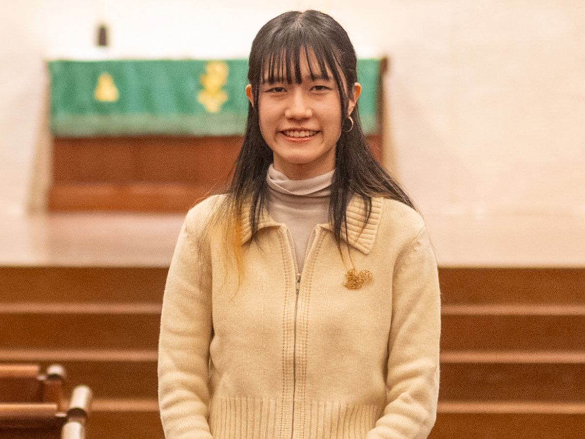 必修科目である「キリスト教概論」の授業では、キリスト教の基本的な考え方や聖書の解釈について学びました。聖書に関する一般知識に加えて、信仰のあり方や文化面での影響に関しても理解が広がったと感じています。講義以外の場でもキリスト教への理解は深まりました。例えば礼拝では、説教者の方が人生の中で抱えてきた問いやその答えに触れることができました。国際政治経済学部に在籍する韓国人の私費留学生の友人は、日本での一人暮らしに不安を覚えることもあったそうですが、「自分はクリスチャンなので、イエス様がそばにおられると感じることでつらいことも乗り越えられた」と話してくれました。こうした経験を通じて、信仰を持つ人にとってキリスト教は単なる知識ではなく、精神的な支えであることが実感できました。キリスト教の学びを経て新たな価値観に触れ、多角的な視点が身に付いたように思います。